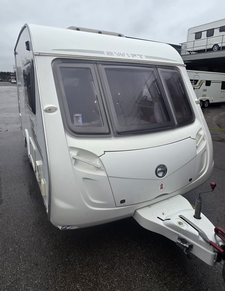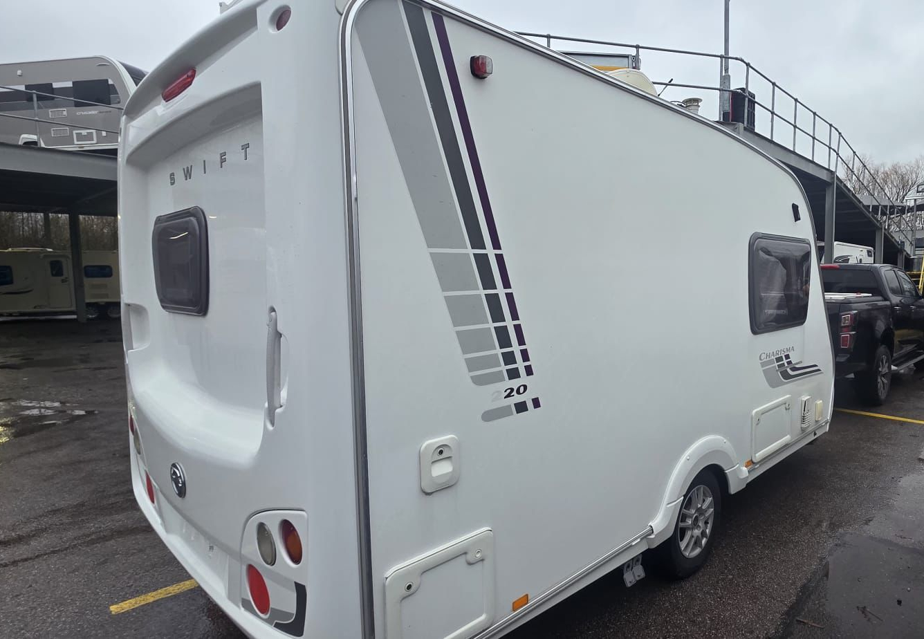 Nice wee Swift Charisma, Compact 2 berth. These compact caravans are very sought after for their manageable size, and are getting hard to source. Easy to tow, manoeuvre and store, and has excellent ground clearance. Lounge allows for double bed to be made up and still have 2 seats. Clever bathroom that provides an enclosed shower