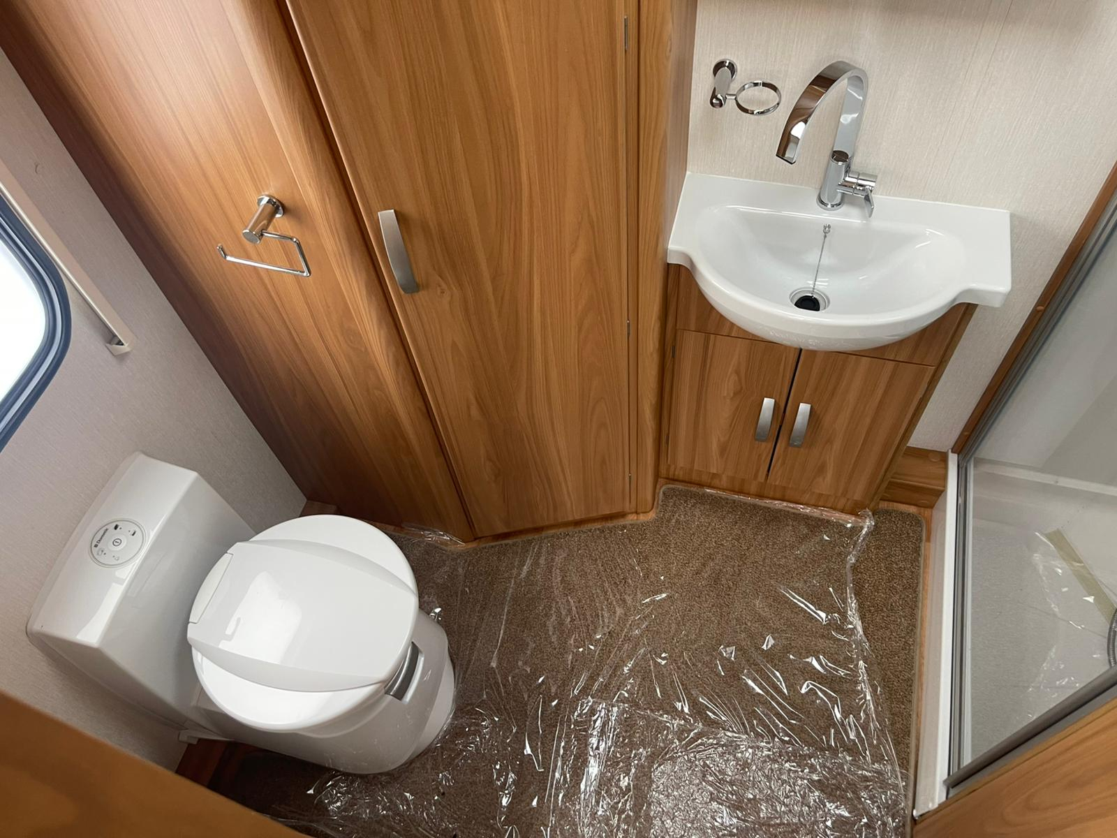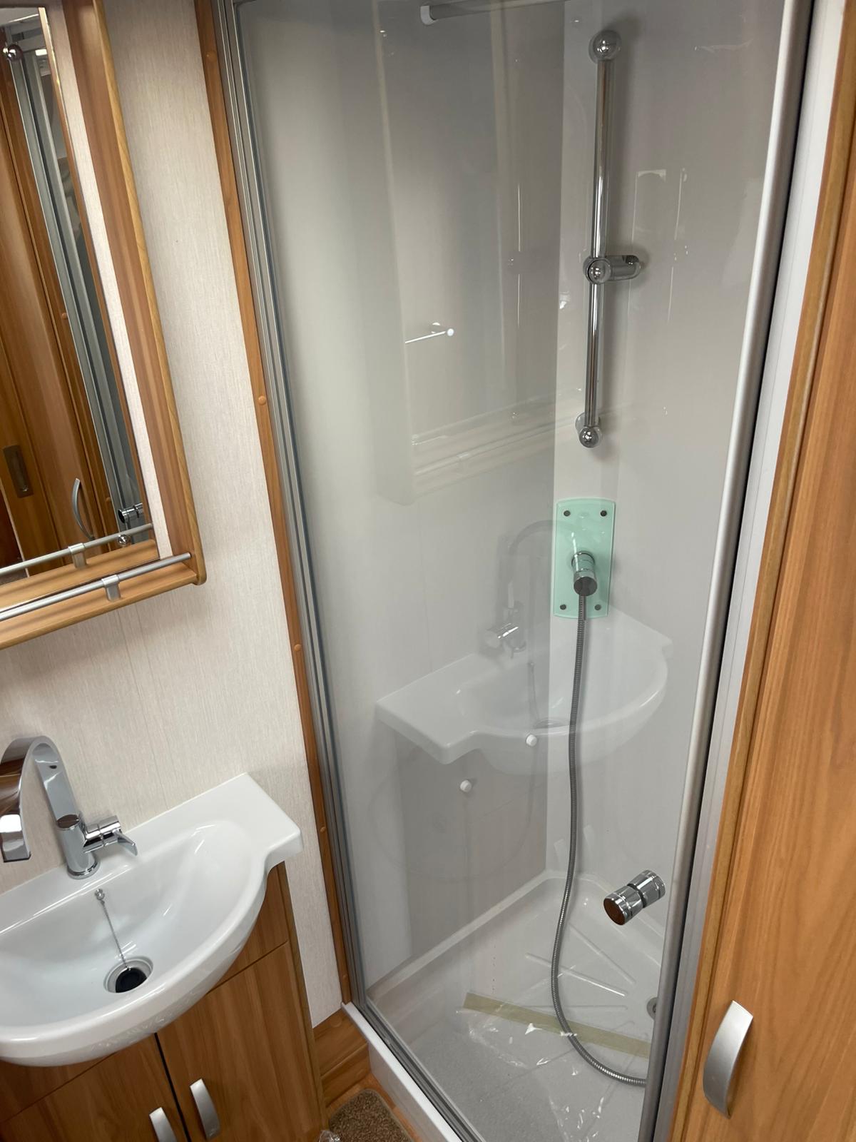 Bathroom with shower, handbasin and Thetford cassette toilet