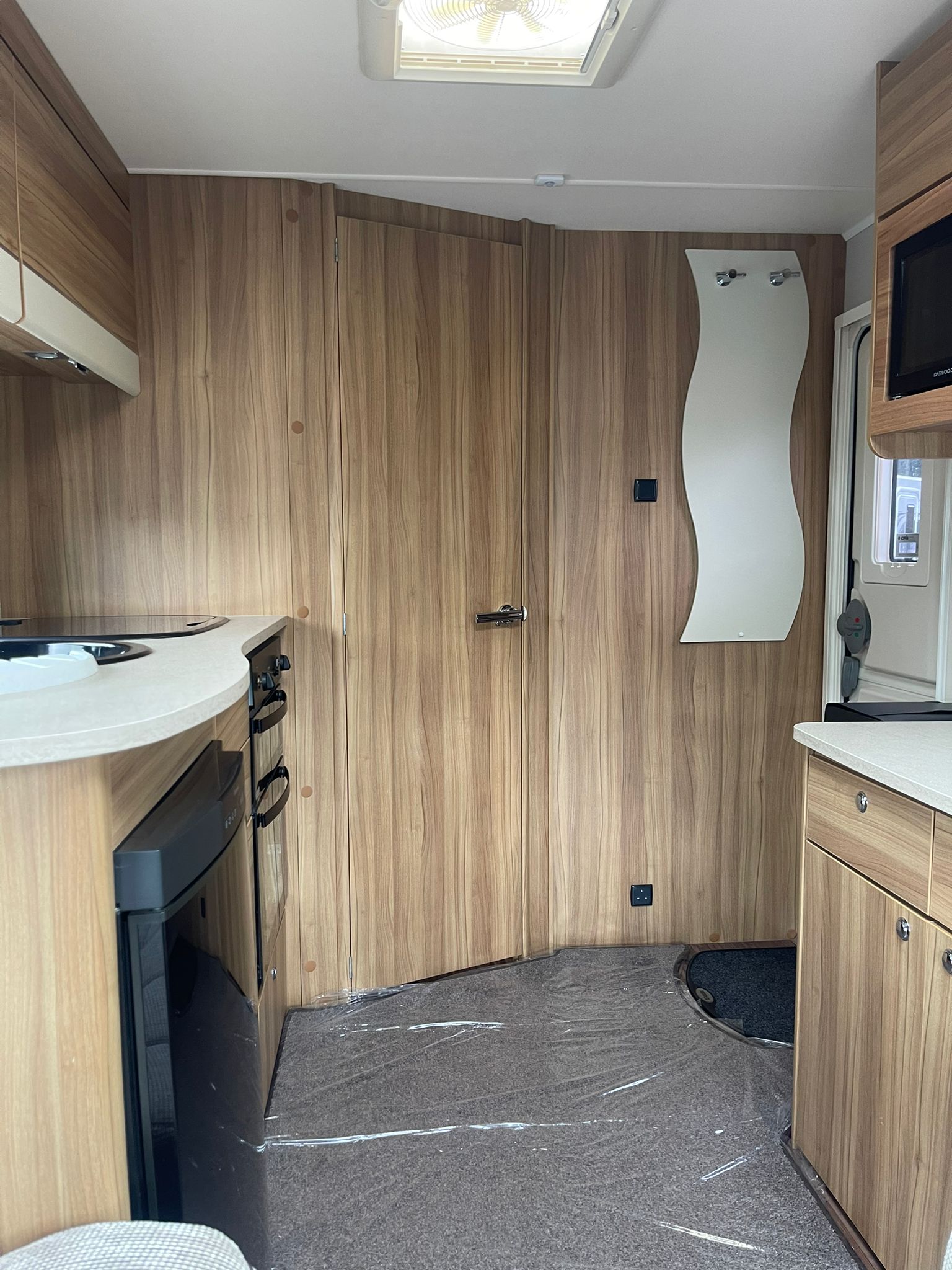2 berth with the luxury of a full rear bathroom with separate shower and toilet. Double bed can be made up in the front and still have two seats, or can be used as two single beds.