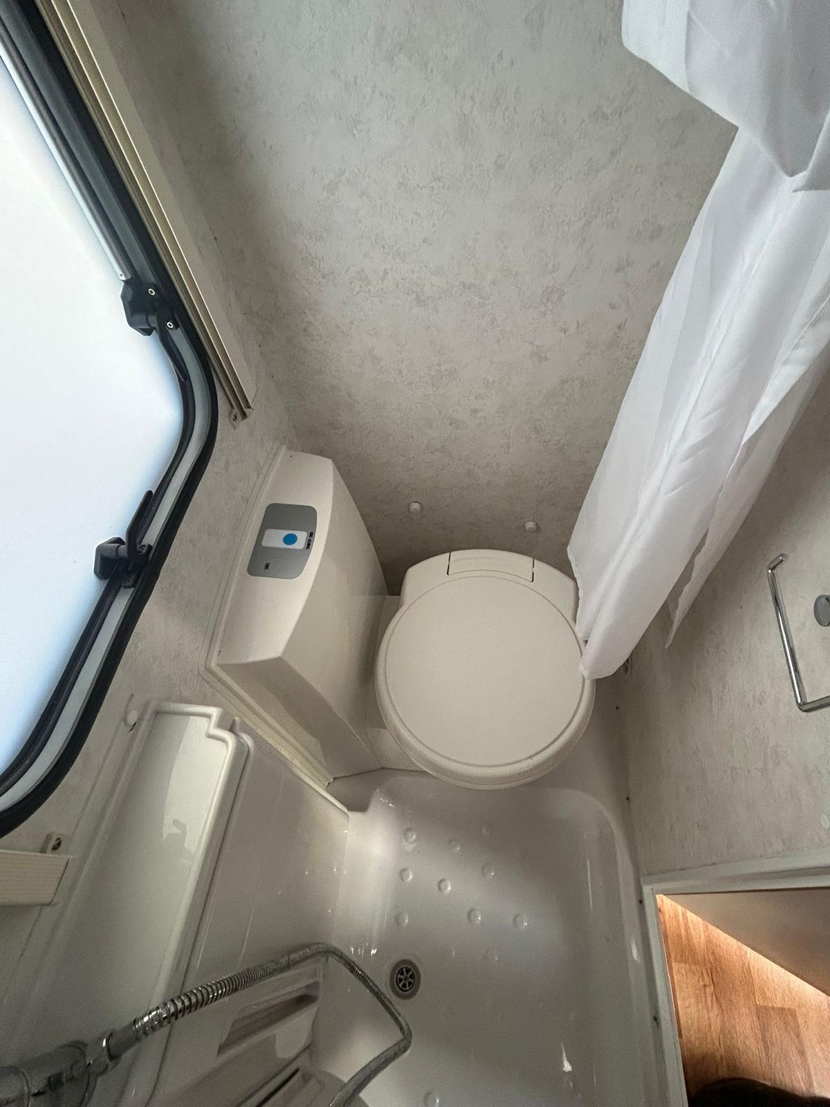 Full rear bathroom with separate shower and toilet