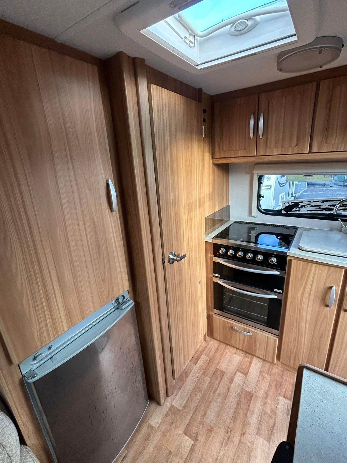 Full kitchen with gas/elec fridge, hot/cold running water, full gas oven with grill and hob.