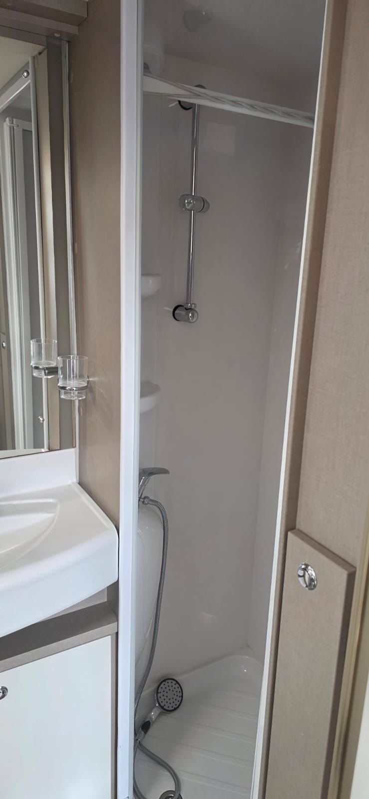 Bathroom with shower, handbasin and Thetford cassette toilet