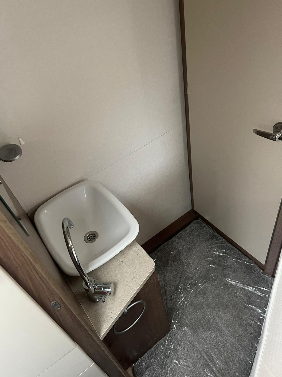 Bathroom with Thetford cassette toilet and shower. Separate vanity