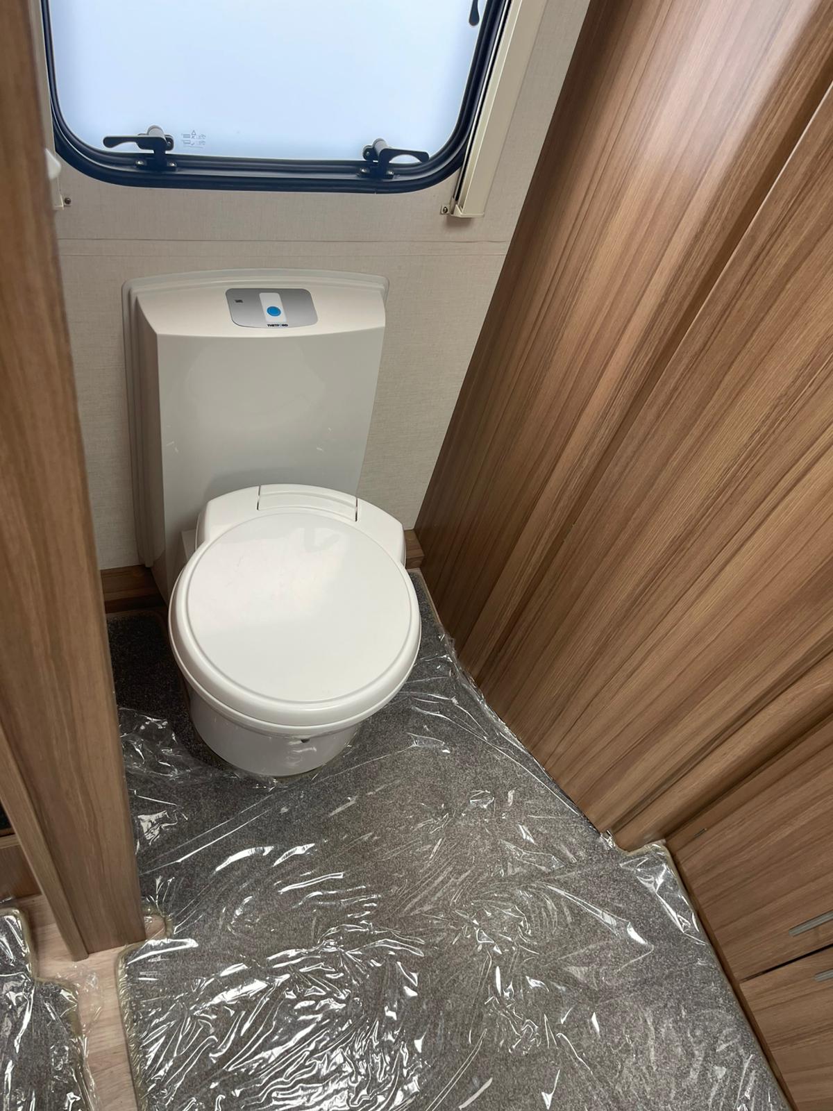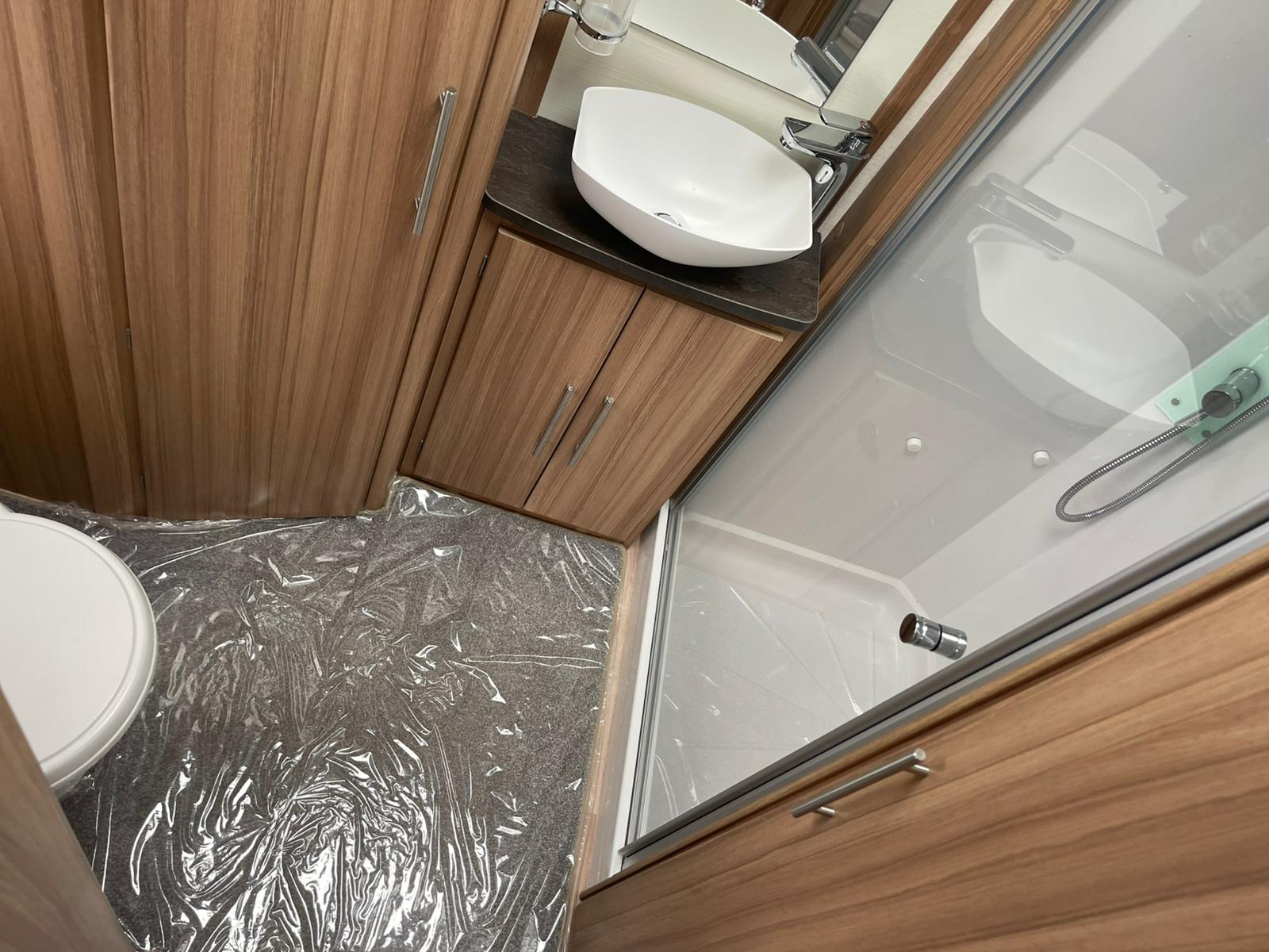 Bathroom with shower, handbasin and Thetford cassette toilet