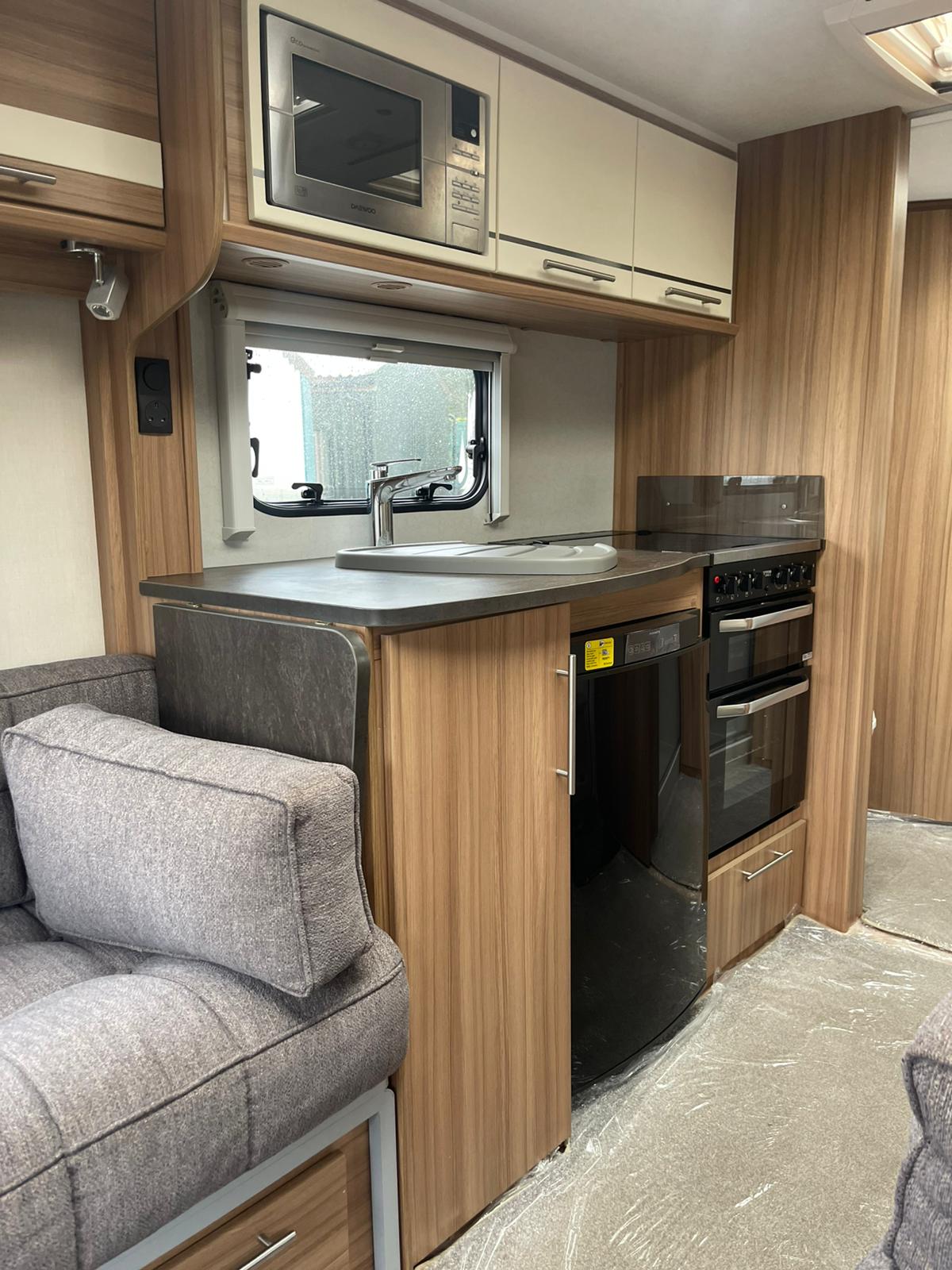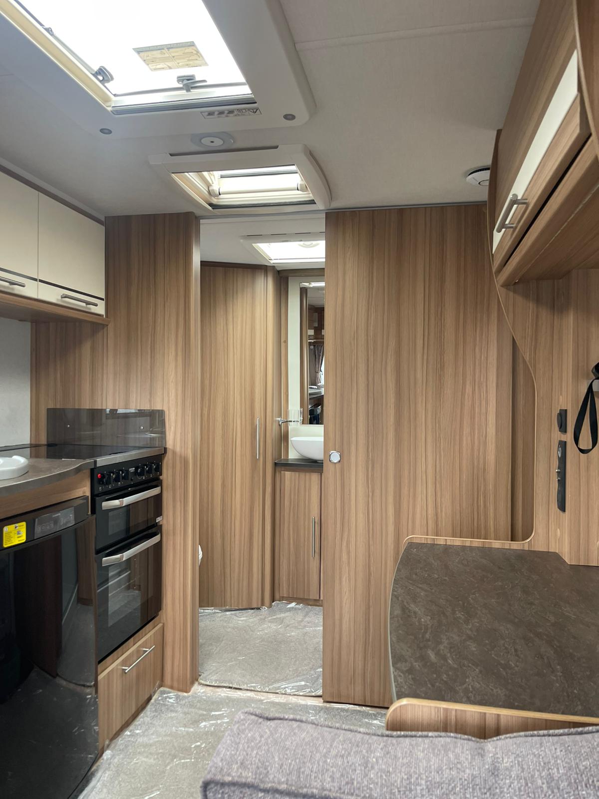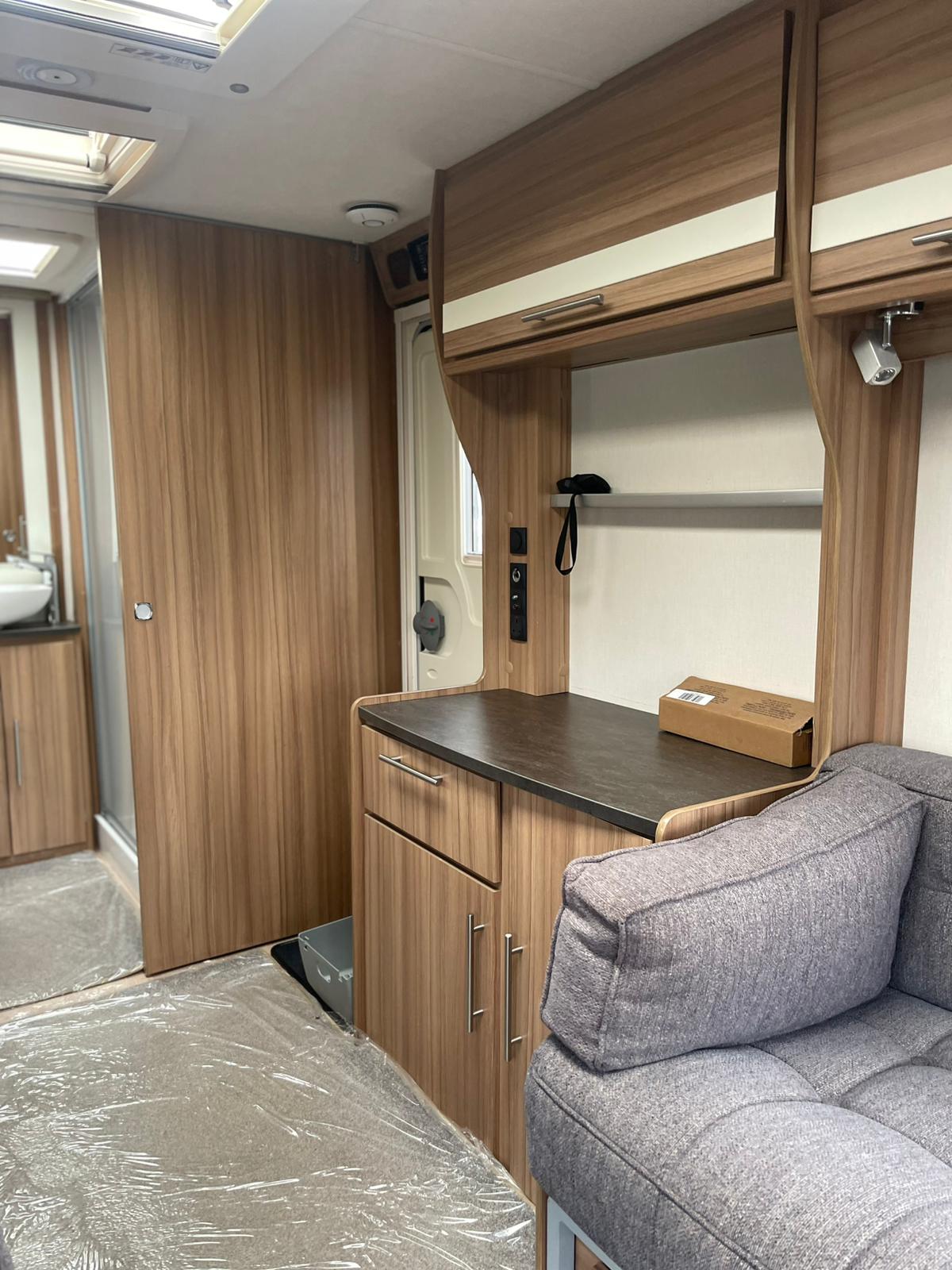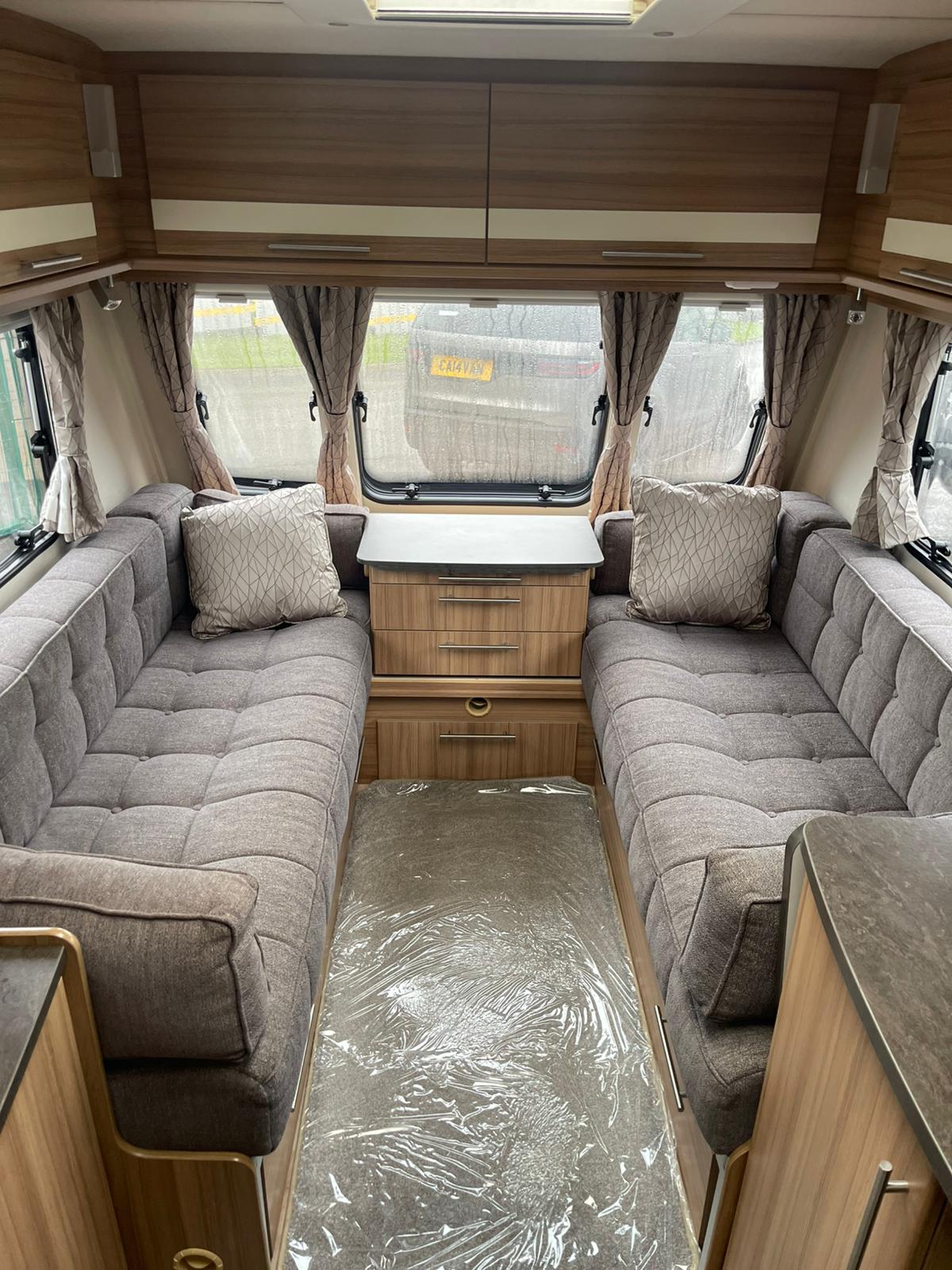 2 berth with the luxury of a full rear bathroom with separate shower and toilet. Double bed can be made up in the front and still have two seats, or can be used as two single beds. Complete with motor mover