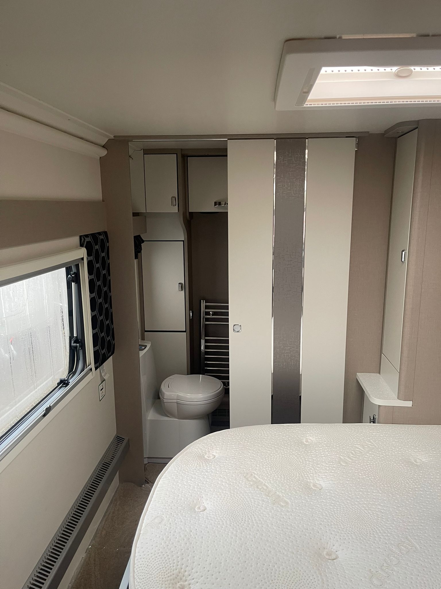Full Bathroom with Thetford cassette toilet, handbasin, Separate Shower, heated towel rail