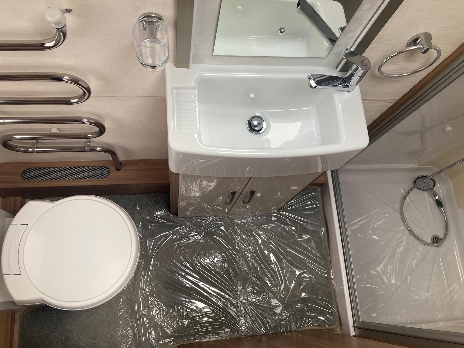 Full rear bathroom with separate shower, toilet and washbasin, even a heated towel rail!